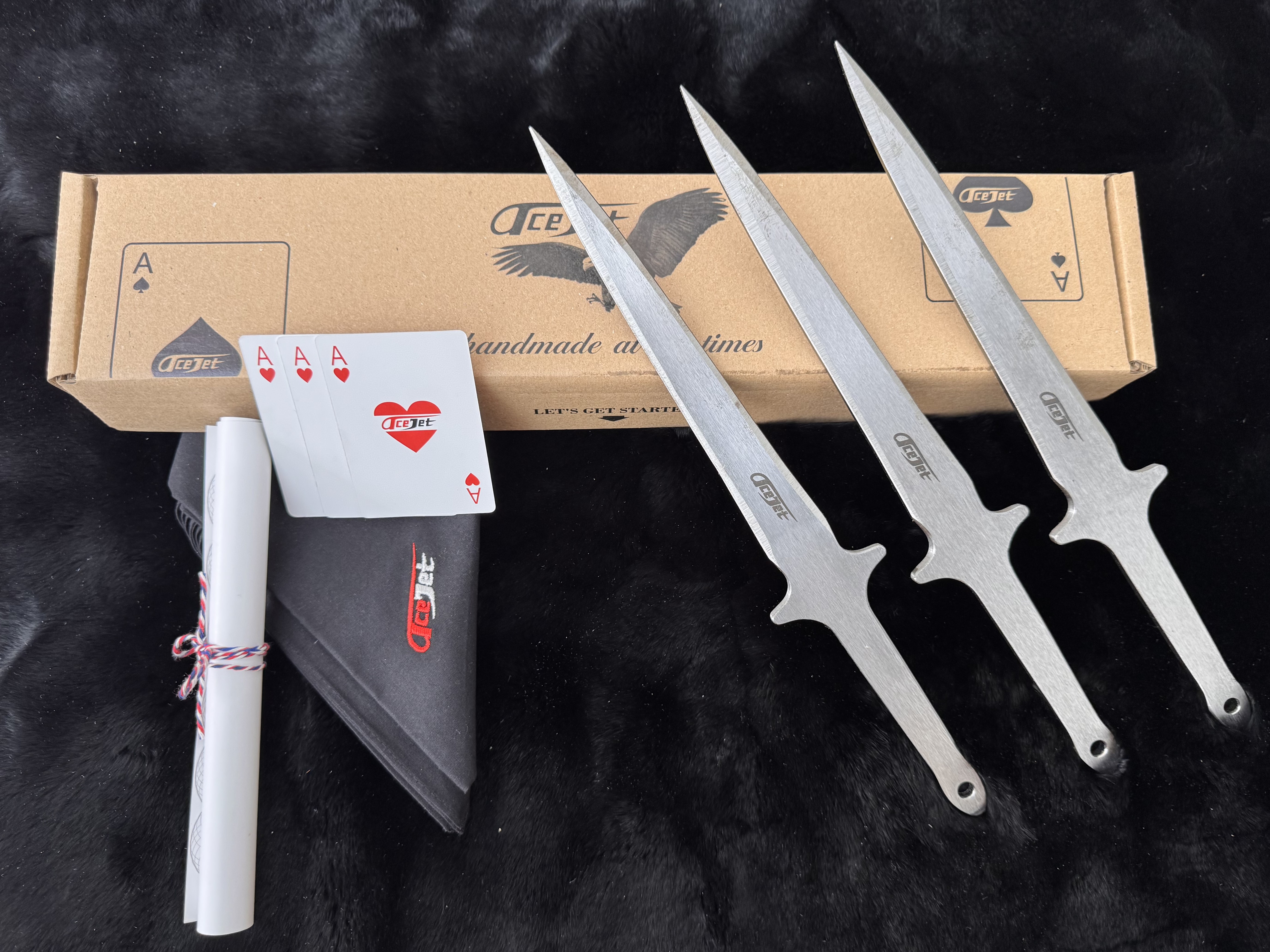 • an ace of hearts, which is meant to place on the centre of the target to strike with the knife
