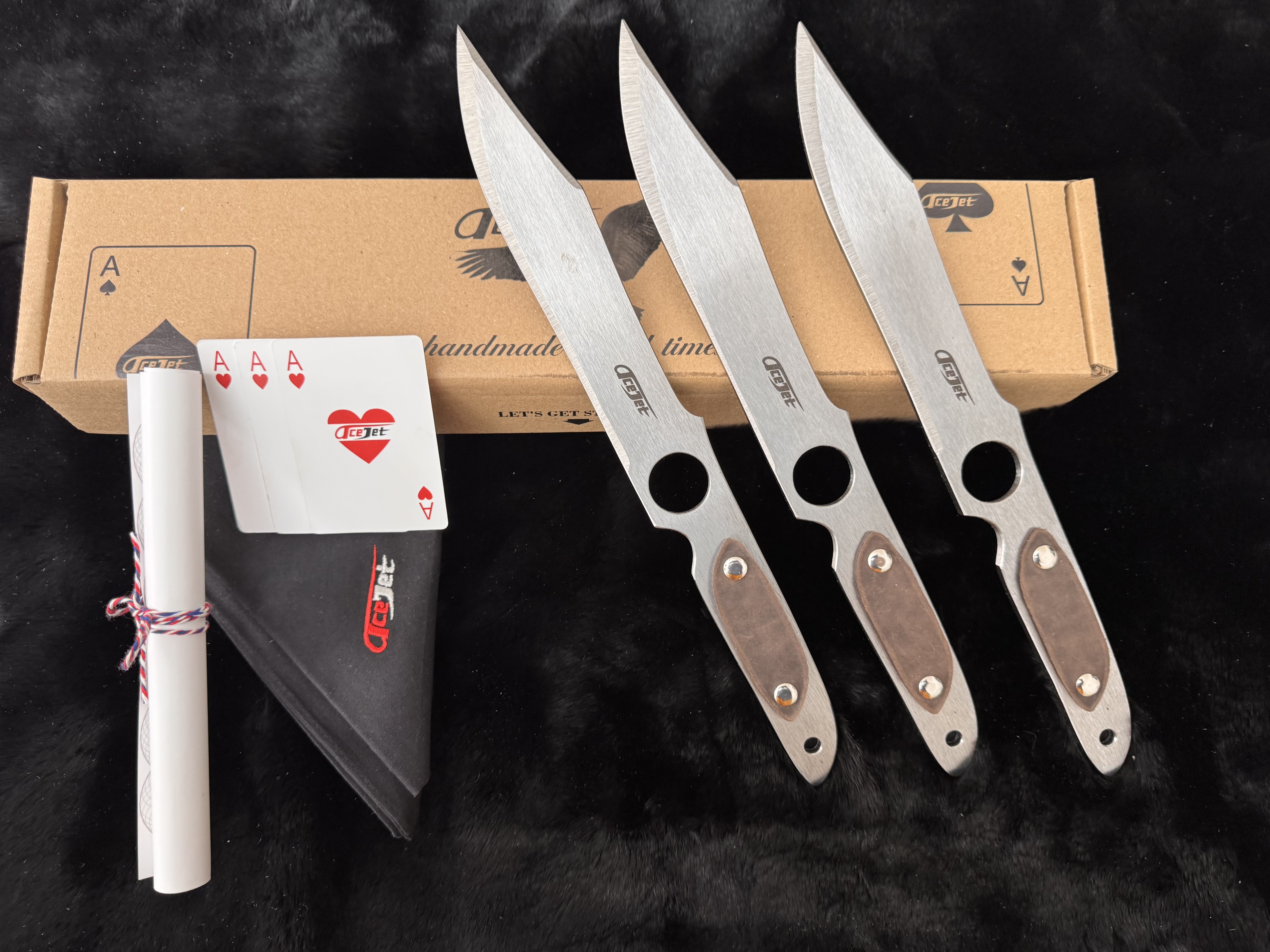 • an ace of hearts, which is meant to place on the centre of the target to strike with the knife